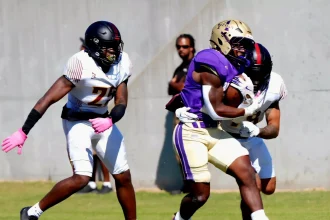 JaCobian Morgan connected with Nate Rembert for an 18-yard touchdown to take the lead with 50 seconds remaining in Jackson State’s homecoming game against Alabama State on Saturday. A goal-line stand by the Tiger defense wrapped the contest in blue…