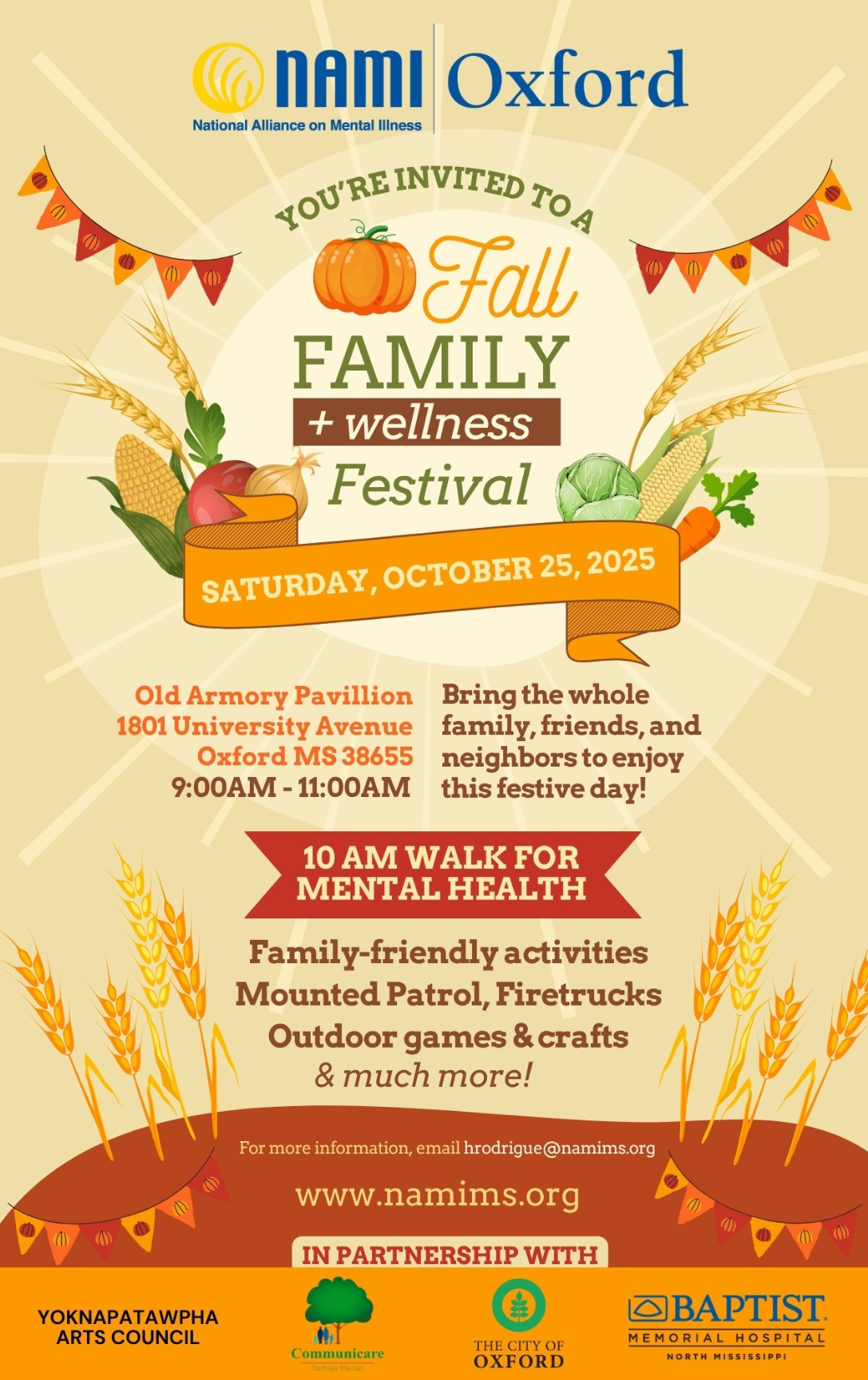 Families in Oxford will have the chance to celebrate community and learn more about mental wellness during a Family Festival and the National Alliance on Mental Illness (NAMI) Walk for Mental health on Saturday, Oct. 25, from 9-11 a.m. at the Old Armory Pavilion on Bramlett Boulevard.