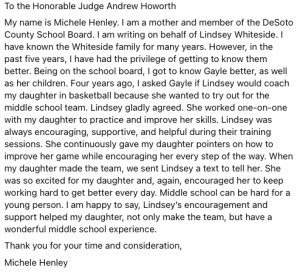 As for Henley’s remarks, the school board member wrote about how Whiteside coached her daughter and helped her improve her basketball skills. Henley referred to Whiteside as “supportive” and “helpful” when discussing the role the coach played in her daughter’s life.